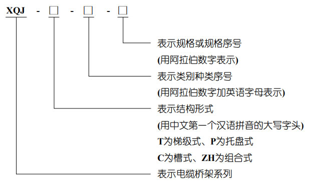 特點與安裝 XQJ電纜橋架具有品種全、應用廣、強度大、結構輕、造價低、施工簡單、配線靈活、安裝標準、外形美觀的特點。 XQJ電纜橋架的安裝可因地制宜??呻S工藝管道架空敷設;樓板、梁下吊裝;室內外墻壁、柱壁、隨道、電纜溝壁下的側裝,還可以露天立柱或支墩上安裝。 大型多層橋架吊裝或立裝時,應盡量采用工字鋼立柱兩側對稱敷設。XQJ電纜橋架可水平、垂直敷設、可轉角、T字形、十字形分支:可調寬、調高、變徑。 電纜橋架型號表示方法