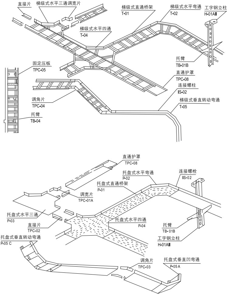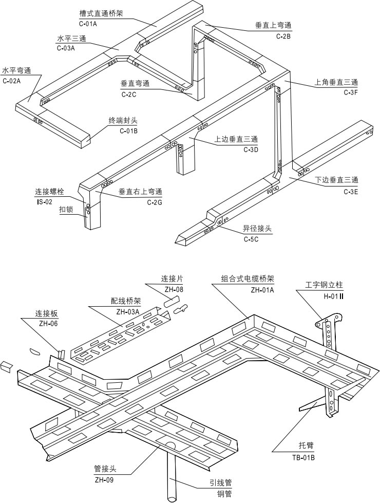 梯級式、托盤式、A型組合式電纜橋架 XQJ-T、P、ZH-01A |