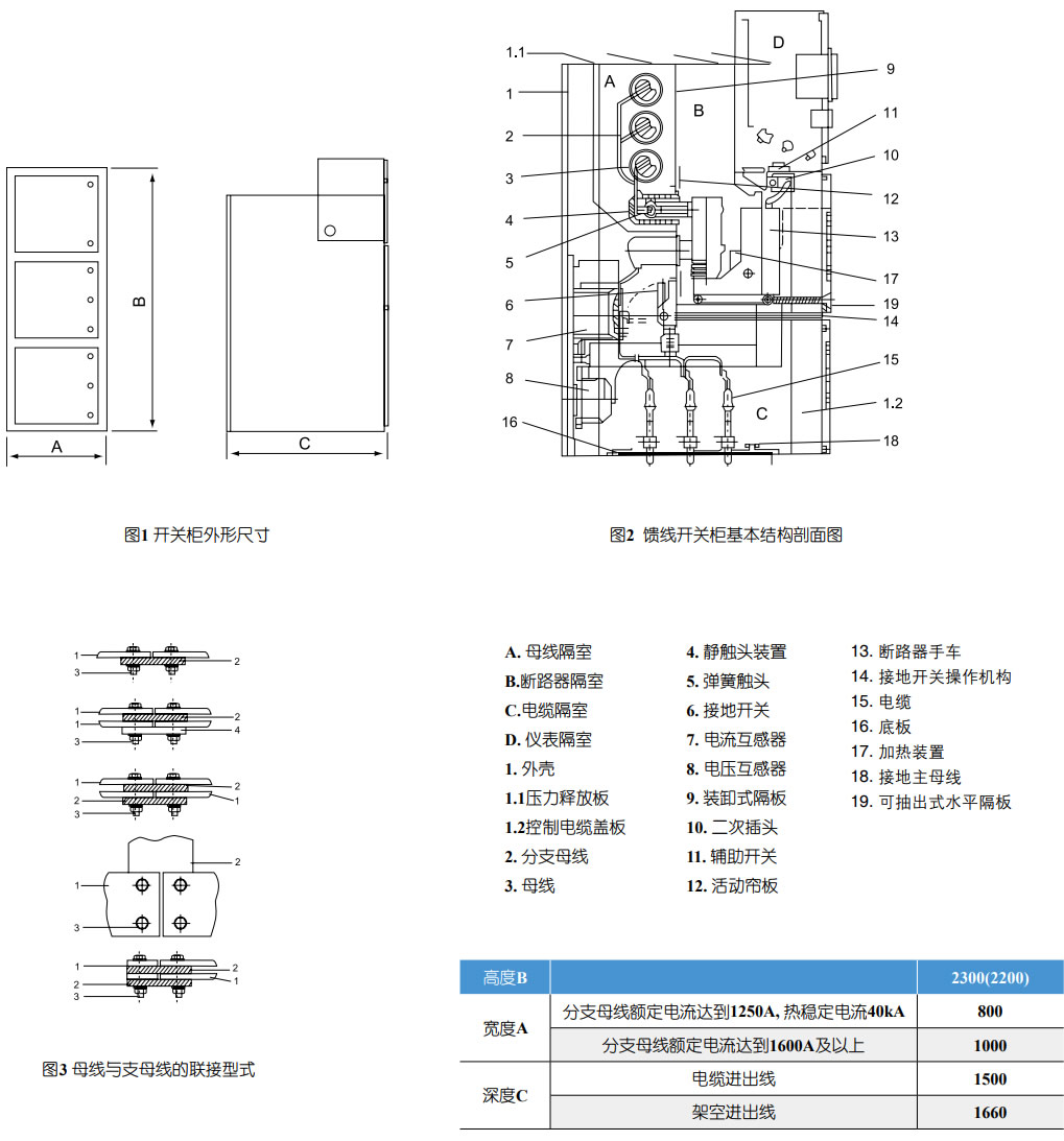 在電纜室內(nèi)單獨設立有5X40mm2的接地銅排能貫鄰相鄰的開關柜,并與柜體良好接觸。此接地排供直接接地之元器件使用。同時由于整個柜體用覆鋁鋅板相拼聯(lián),這樣使整個柜體都處在良好接地狀態(tài)之中,確保運行操作人員觸及柜體**。開關設備外形尺寸(見圖1)