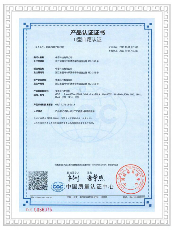 **質(zhì)量認(rèn)證產(chǎn)品認(rèn)證證書(shū)